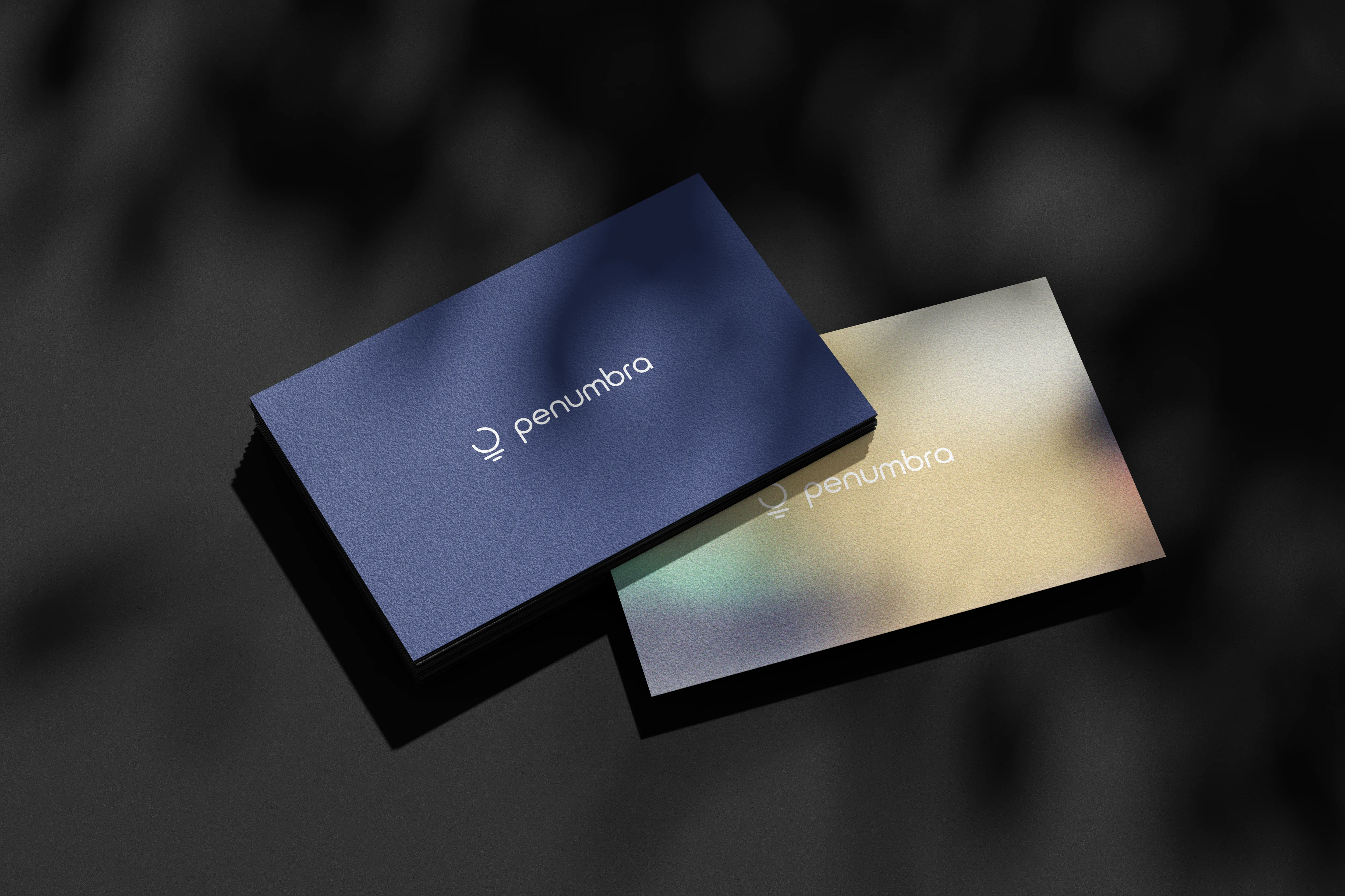 Pour le logo, j’ai imaginé une forme circulaire évoquant à la fois une lune, en lien avec le nom de la marque, et une ampoule, symbole de la naissance d’une idée. L’objectif était de représenter le rôle de Penumbra : aider les entreprises à imaginer des concepts lumineux et percutants. Côté couleurs, j’ai opté pour une palette inspirée de la nuit et de la pénombre, avec des dégradés qui traduisent cette transition entre ombre et lumière. La typographie du logo a été choisie pour s’harmoniser parfaitement avec l’icône, en reprenant ses épaisseurs et ses formes, créant ainsi un ensemble cohérent et équilibré.
